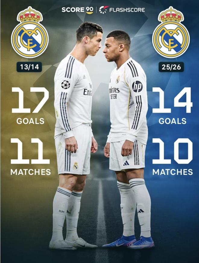 姆巴佩又把欧冠单赛季进球纪录的悬念拉满了。欧冠八强首回合,虽然皇马在主场1比2输给了拜仁,但姆巴佩还是打进了一球,把自己本赛季的欧冠成绩单刷新到了10场14球。目前的欧足联最新射手榜上,他稳坐第一;而欧冠的单赛季历史纪录,还是C罗在2013/14赛季创下的11场17球。两人之间就差3个球,这让“姆巴佩到底能不能超C罗”不再是一句空话,大家已经开始按场次、赛程和年龄去细算了。